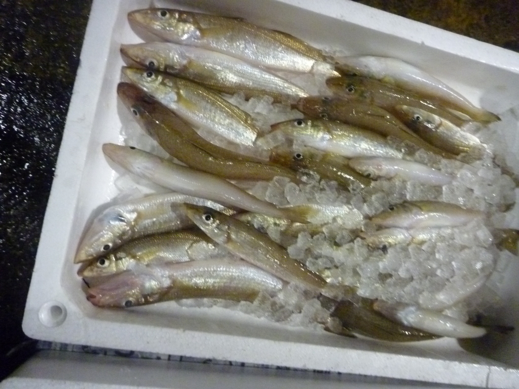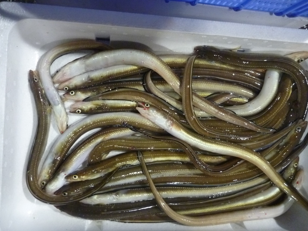 主なものは、マダイ、メイタ、ゲタ、ヒラメ、ハネ、キス、オコゼ、アナゴ、