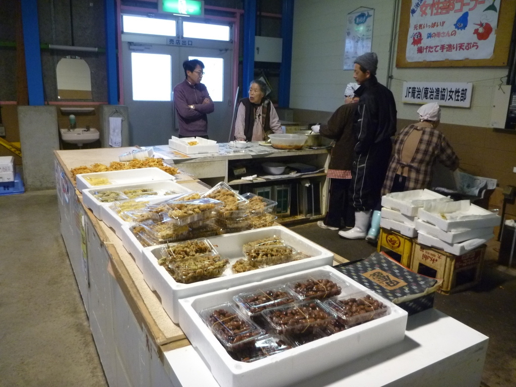 女性部、素潜り、水産加工品、組合新商品の各コーナーです。