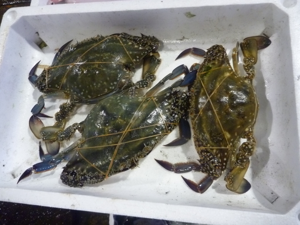 ワタリガニが量は少ないのですが、市場に連日顔を見せています。