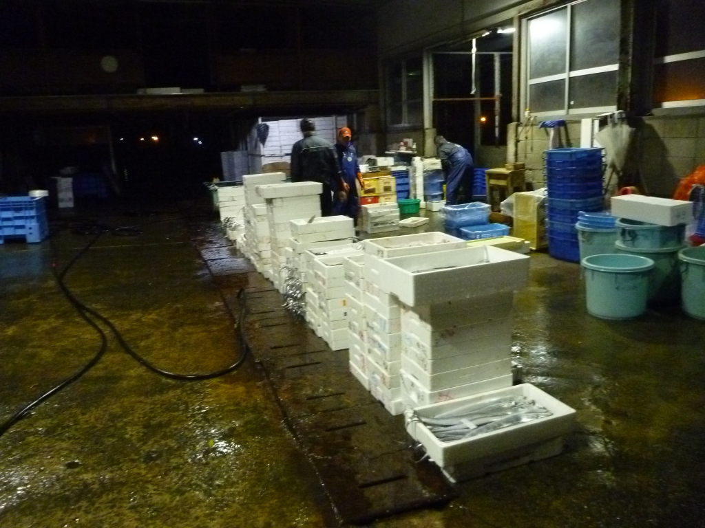 地元の魚屋さんやスーパーが買って帰ります。