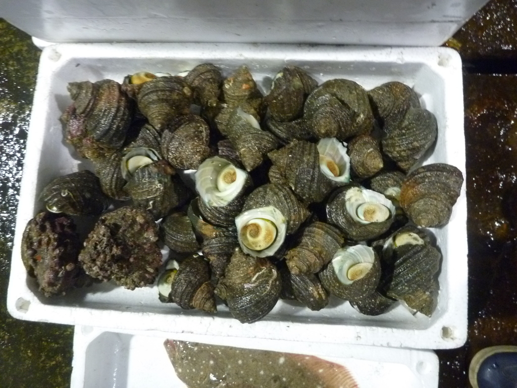 ニシ貝、サザエ、ナマコ等です。