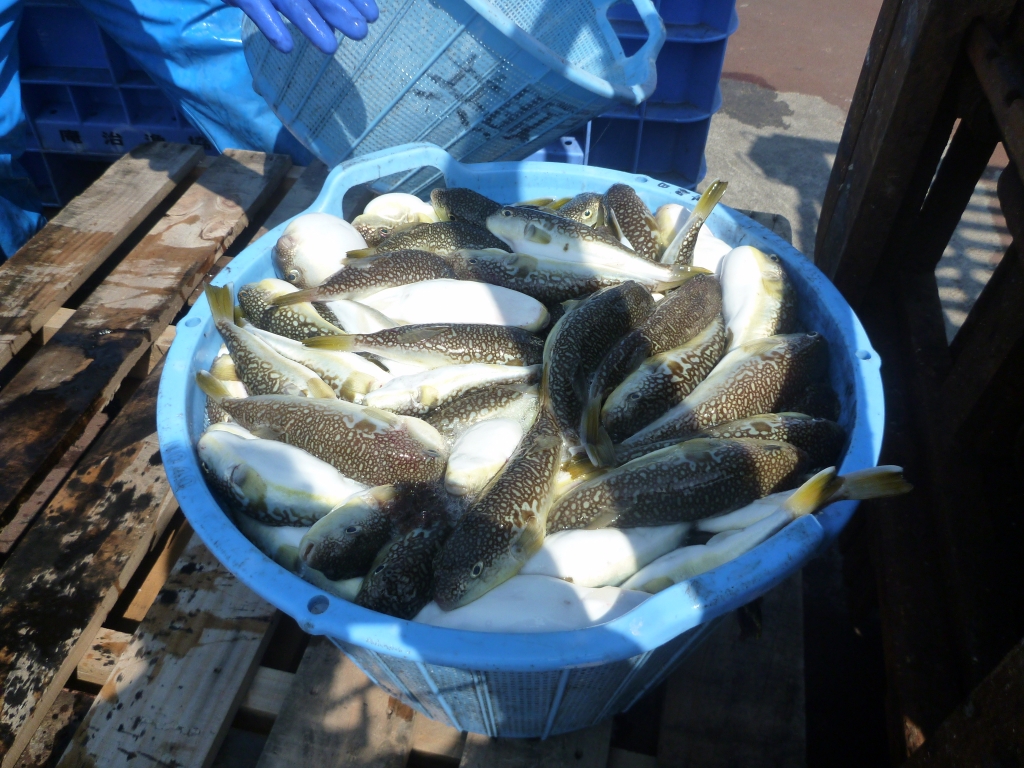 水揚げされるナシフグ