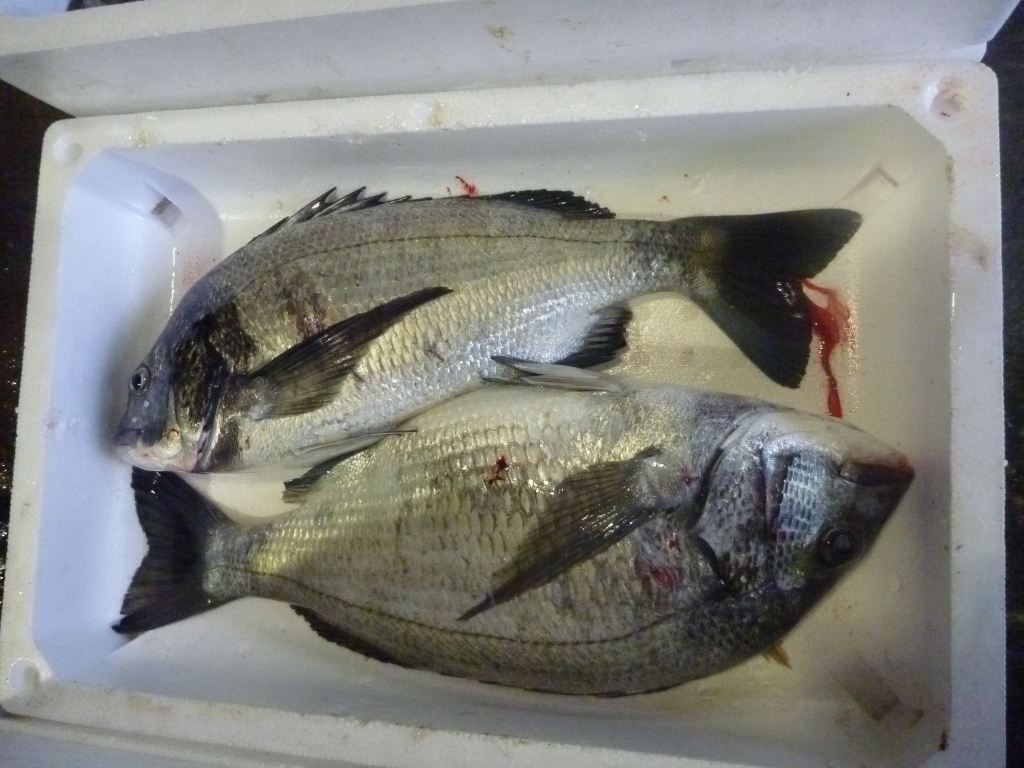 主なものは、マダイ、ハネ、ヒラメ、チヌ、ゲタ、メイタ、メバル類、キス、オコゼ、ニベ、アナゴ、