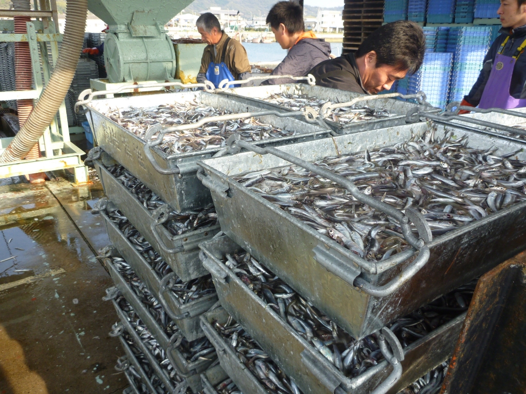 水揚げ中のカタクチイワシ