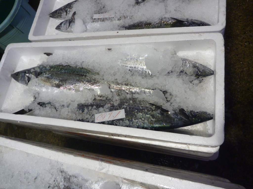 市場に並ぶサワラ