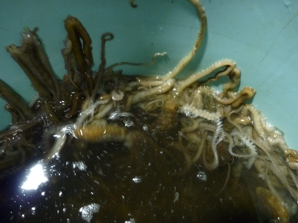 アナゴ、イイダコ、テナガダコ、ベイカ、イシガニ、タチガイ、ニシ貝、ナマコ等です。