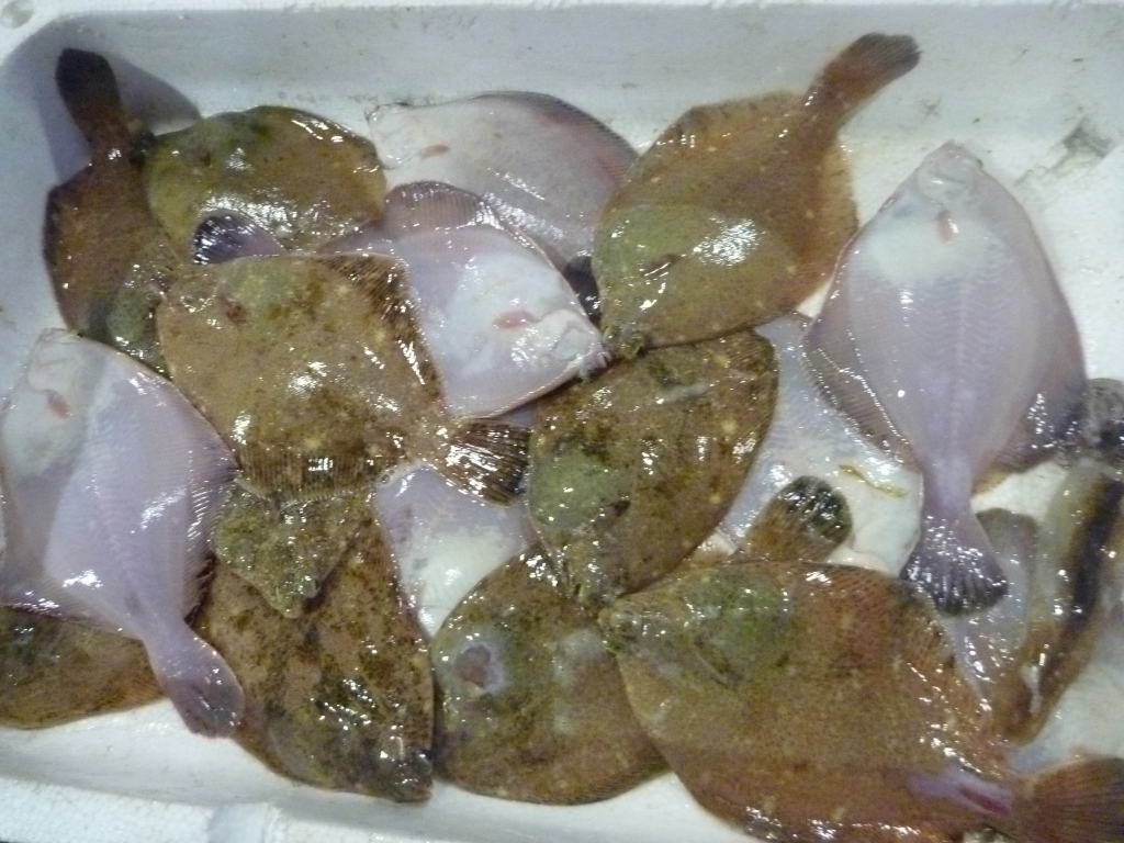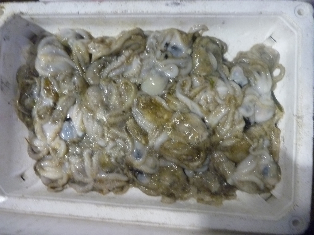 ベイカ、ハリイカ、小エビ、ワタリガニ、タチガイ、ニシ貝、等です。