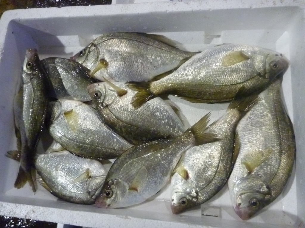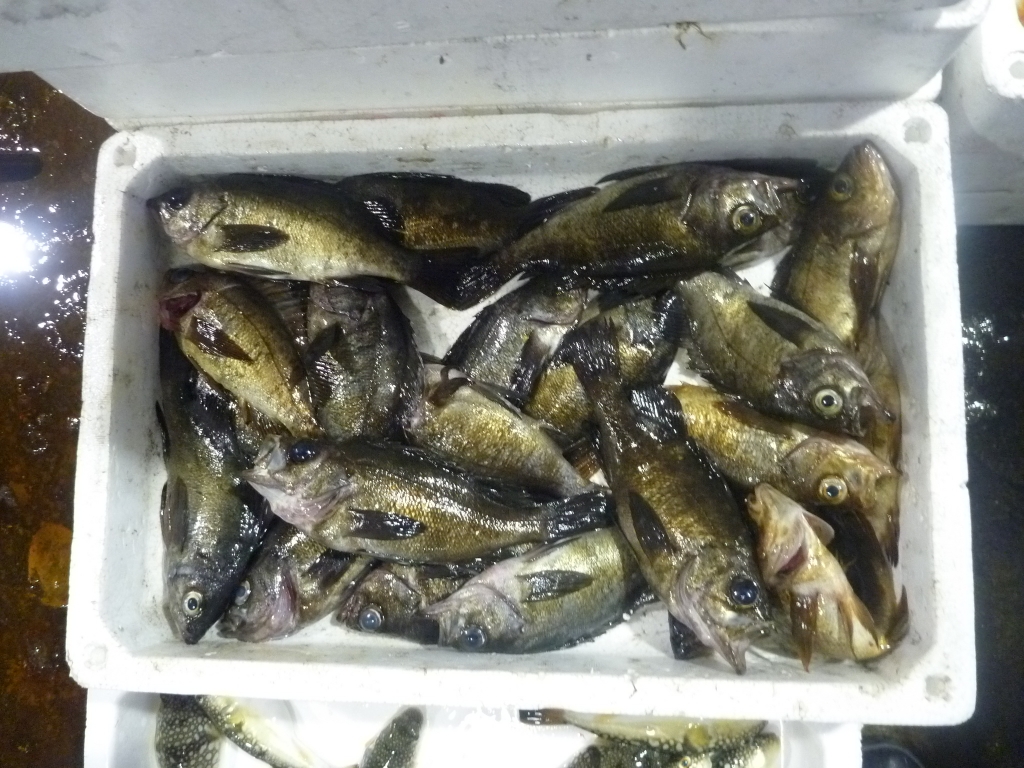 主なものは、マダイ、ハネ、チヌ、ゲタ、メイタ、ヒラメ、メバル類、タナゴ、