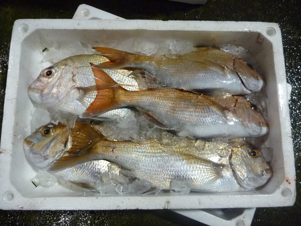 主なものは、マダイ、ハネ、チヌ、ゲタ、メイタ、アマテ、メバル類、タナゴ、オコゼ、