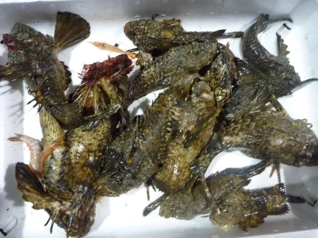 ナゴヤフグ、アナゴ、イイダコ、ベイカ、ハリイカ、小エビ、ワタリガニ、