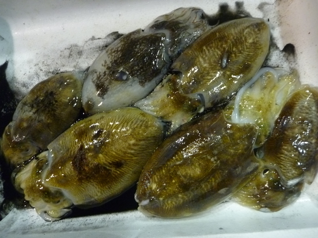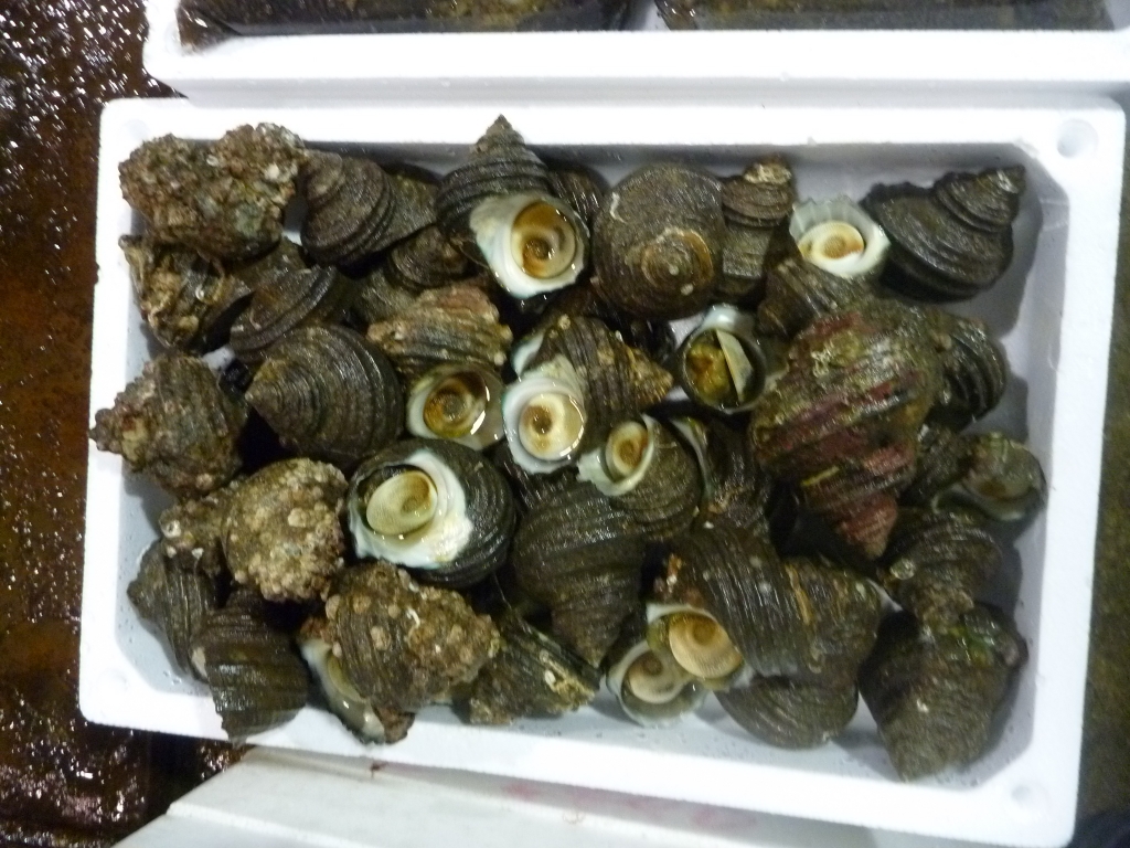 タチガイ、サザエ、アワビ、ニシ貝、ナマコ等です。