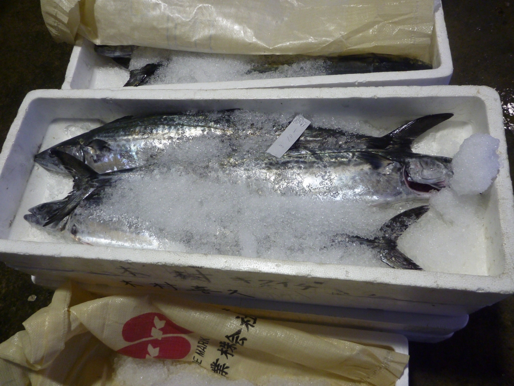 市場に並ぶサワラ