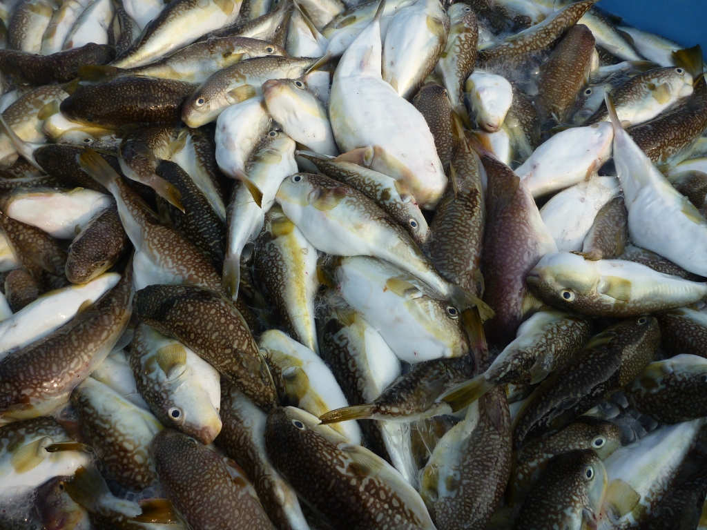 昨日は13隻でナシフグを8トン程水揚げしました。