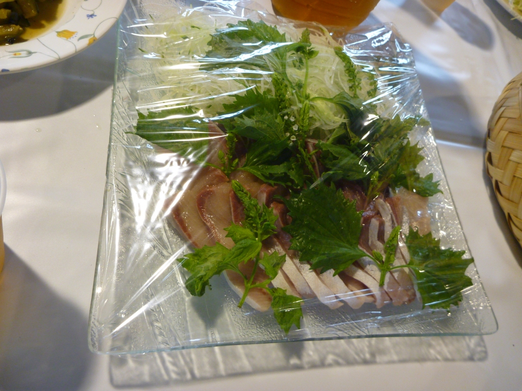 料理メニユーは、タコ飯、オリーブハマチの刺身、ゲタのから揚げ、酢の物、ハマチの粗を使った赤だし等でした。