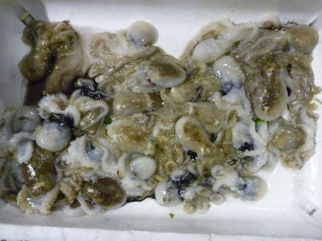 アナゴ、イイダコ、ベイカ、小エビ、ニシ貝、サザエ、ナマコ等です。