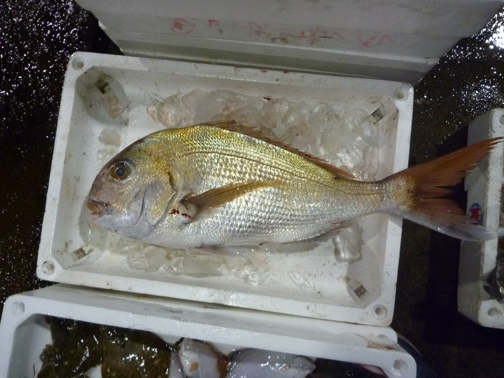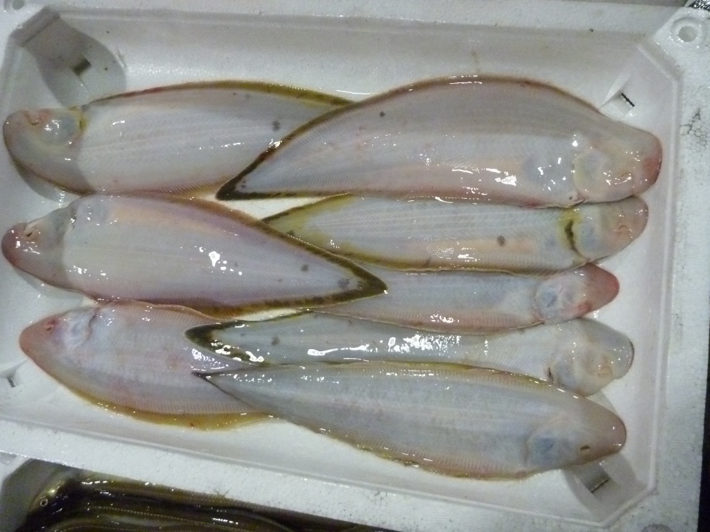 今朝の市場に出ている主な魚は、メイタ、ゲタ、マダイ、キス、ハネ、オコゼ、