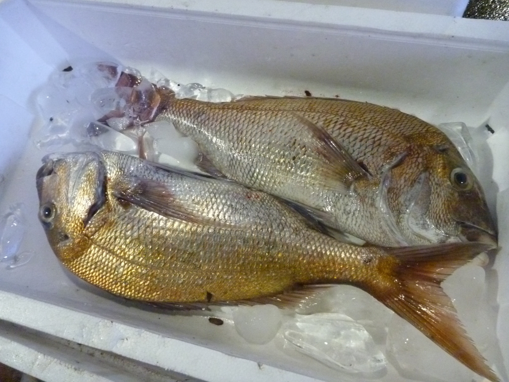 主なものは、マダイ、ボラ、メイタ、ゲタ、マナガツオ、メバル類、キス、オコゼ、ハネ、