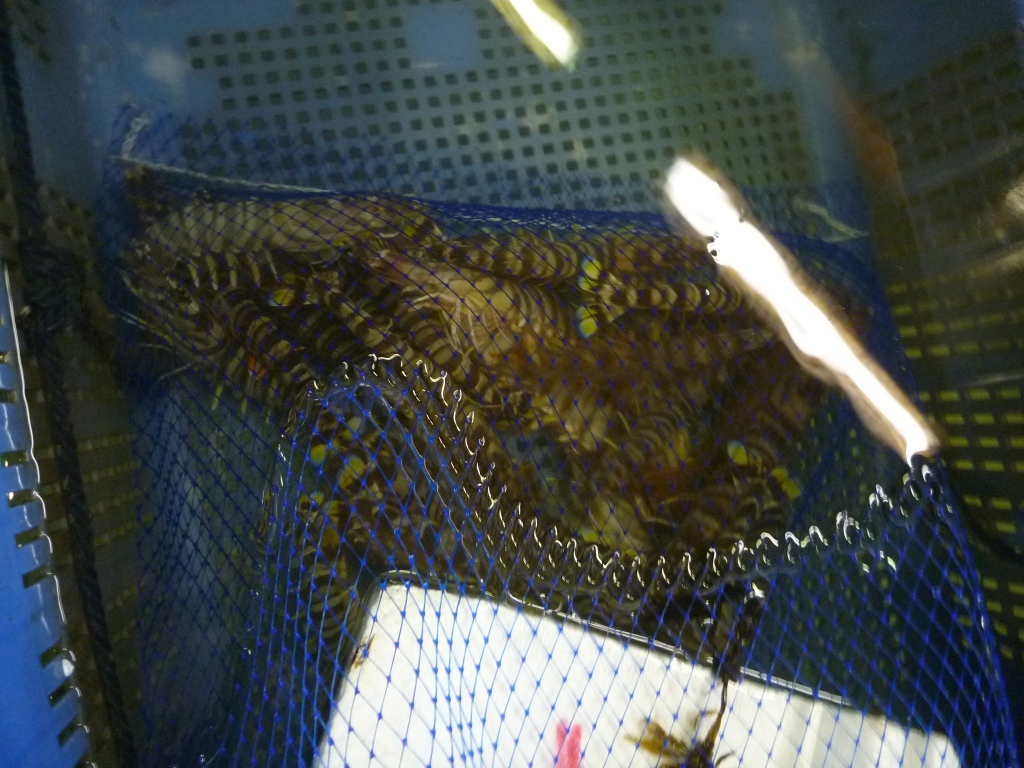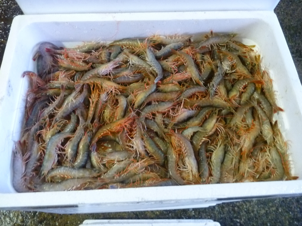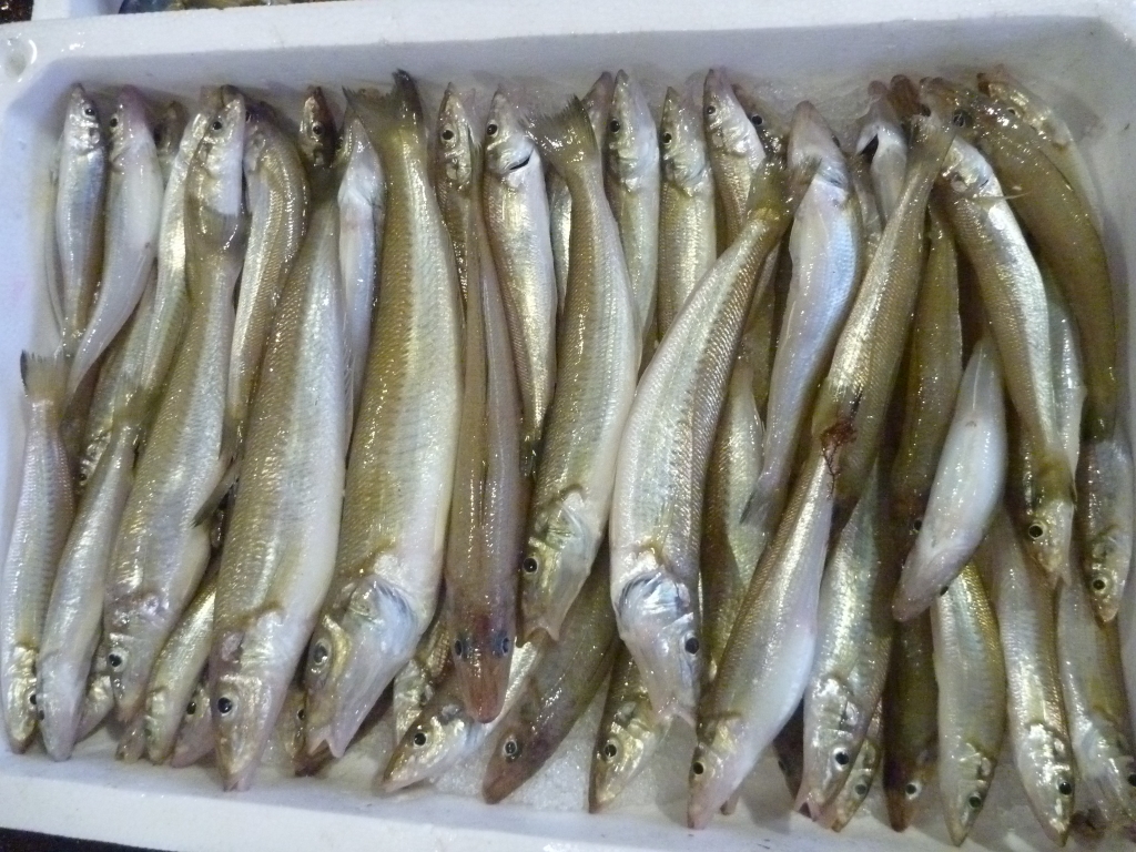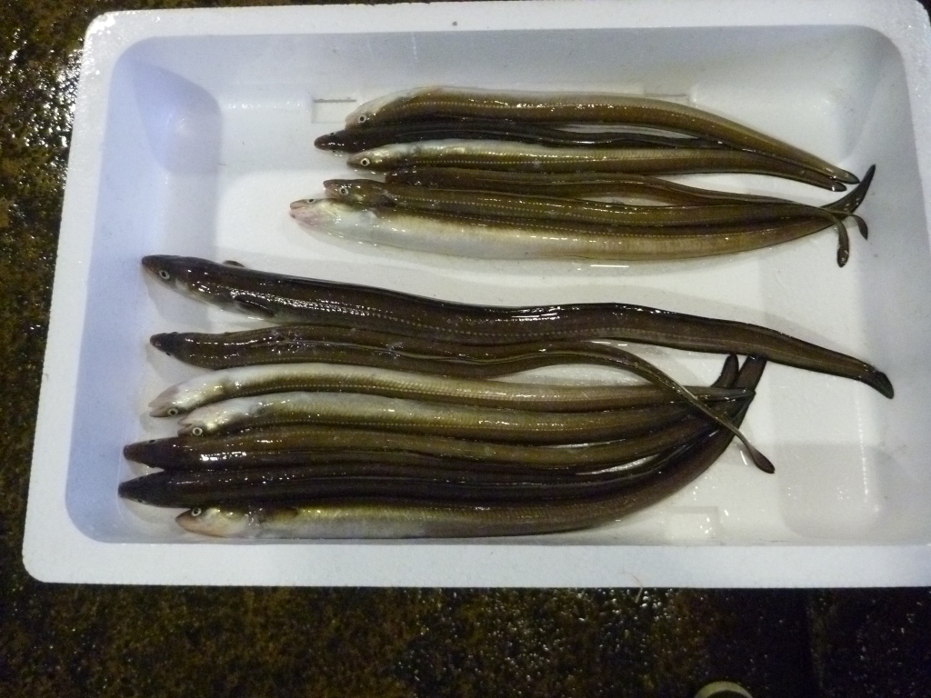 ニベ、アカエイ、アナゴ、マダコ、ベイカ、小エビ、クルマエビ、ワタリガニ、ニシ貝等です。