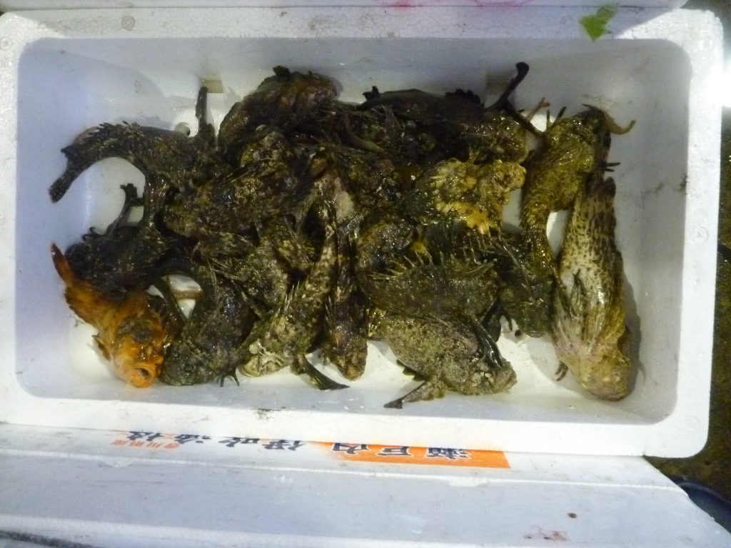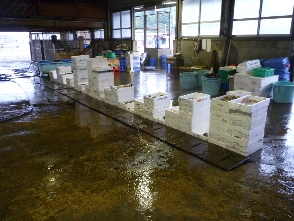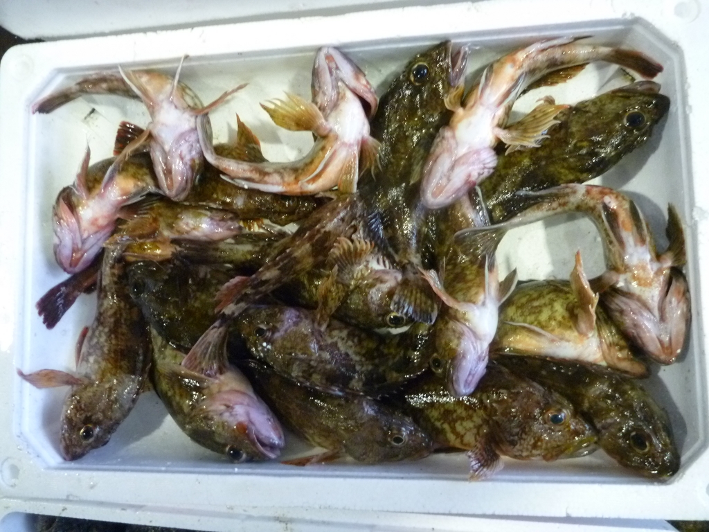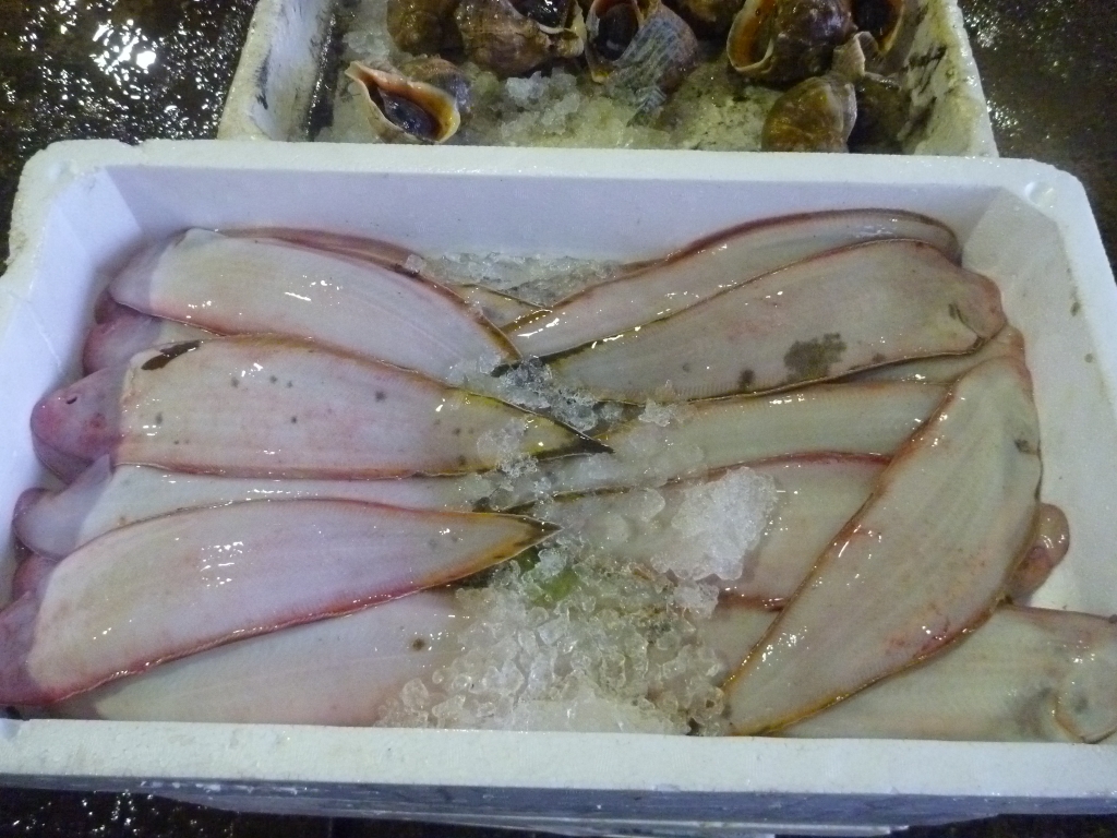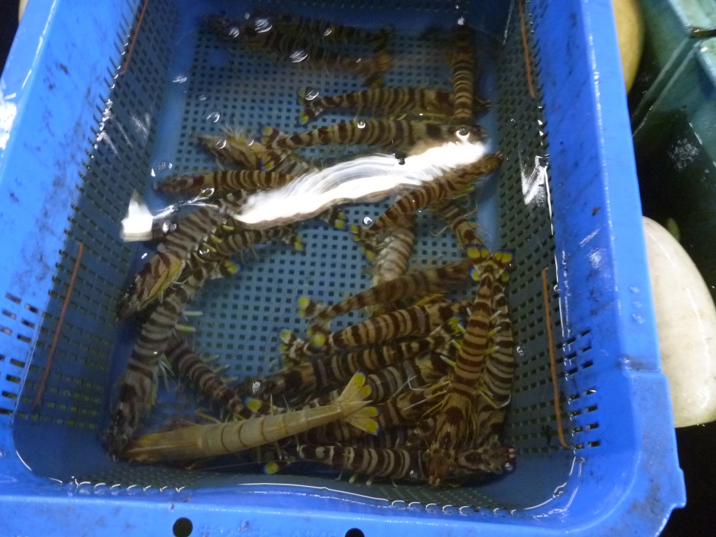 スルメイカ、小エビ、ワタリガニ、ニシ貝等です。