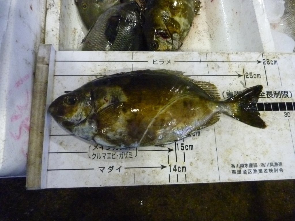 主なものは、マダイ、チヌ、ハネ、ヒラメ、メイタ、ゲタ、オコゼ、コチゴ、コノシロ、