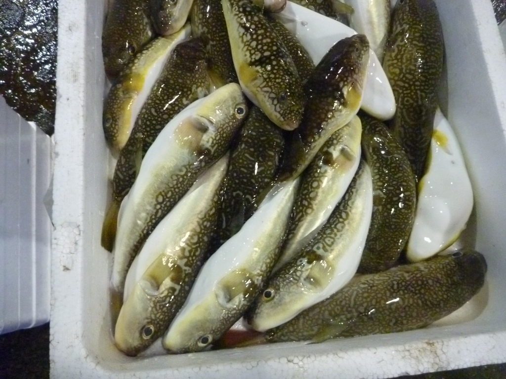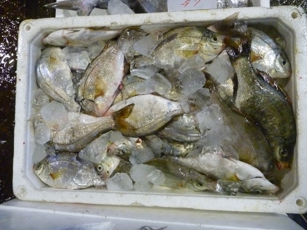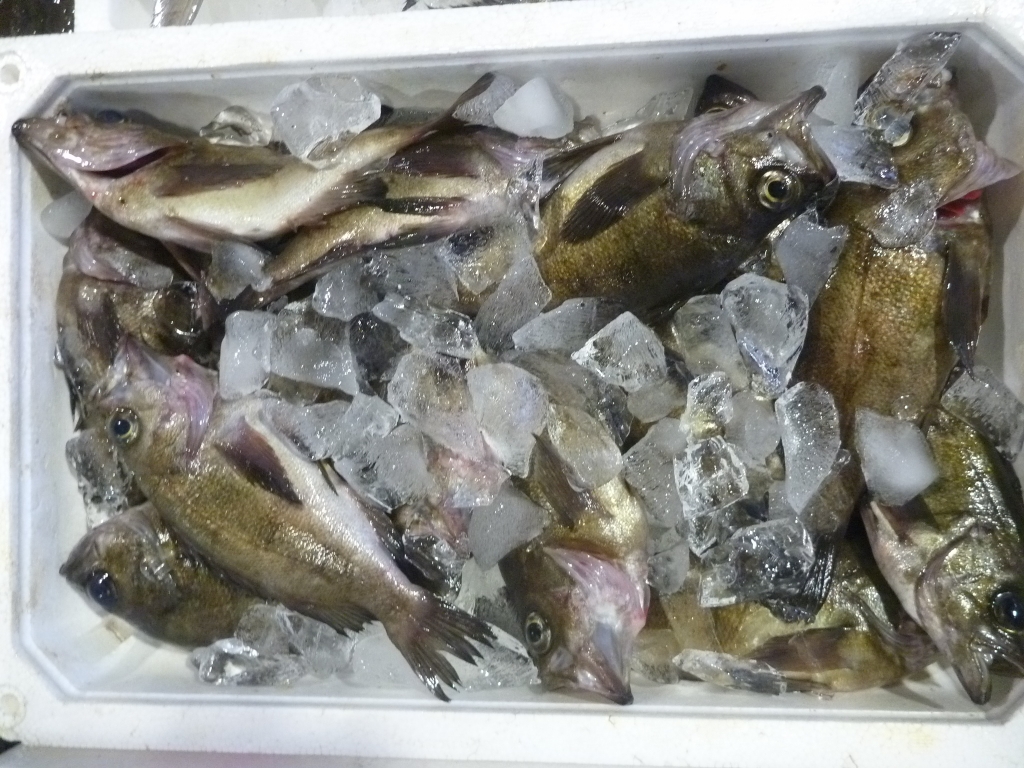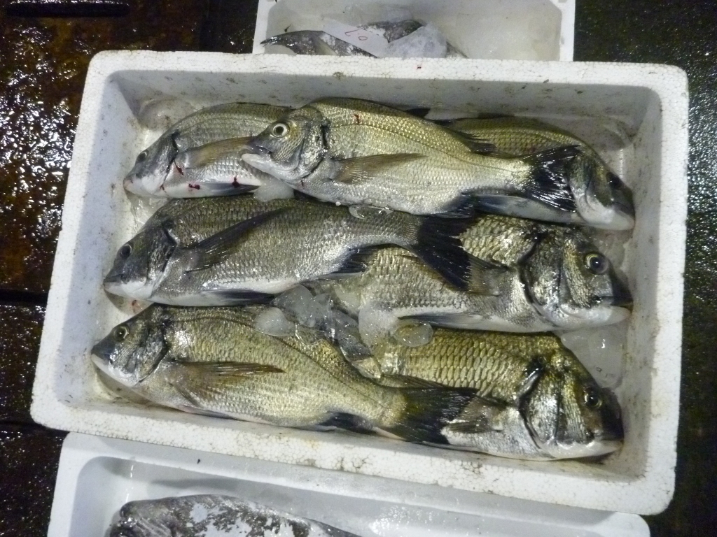 主なものは、マダイ、チヌ、メイタ、ゲタ、マナガツオ、小フグ、メバル類、小フグ、
