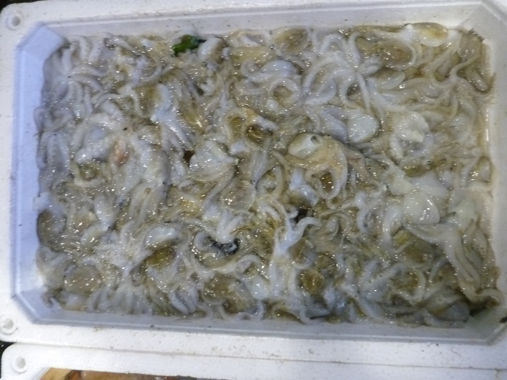 ベイカ、小エビ、クルマエビ、ワタリガニ、ニシ貝等です。