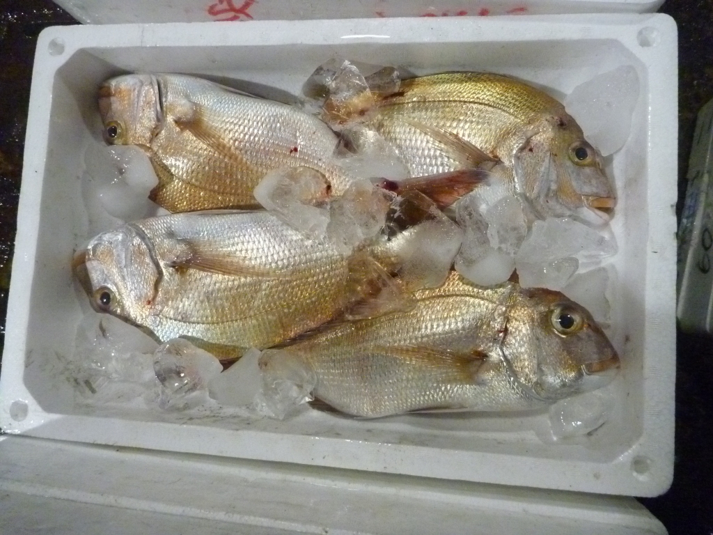 主なものは、マダイ、ゲタ、マルハギ、イイダコ、小イカ、ミズイカ、