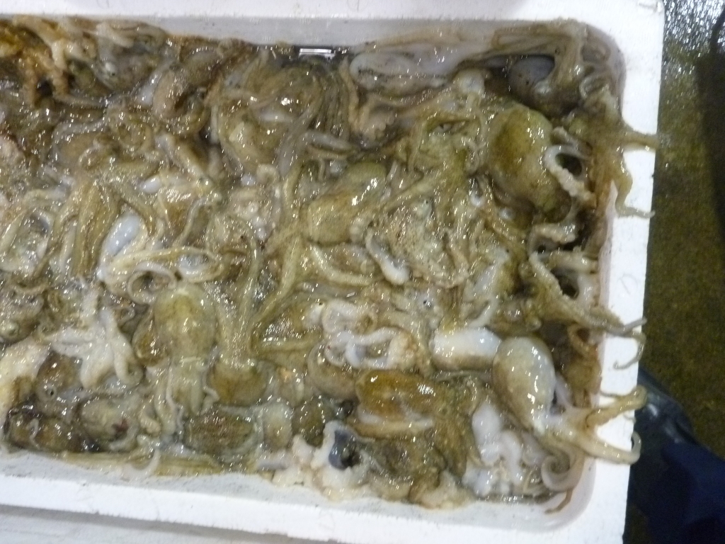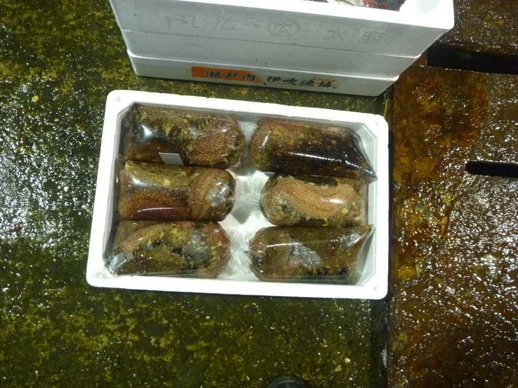 アナゴ、イイダコ、ベイカ、小エビ、ワタリガニ、タチガイ、ナマコ等です。