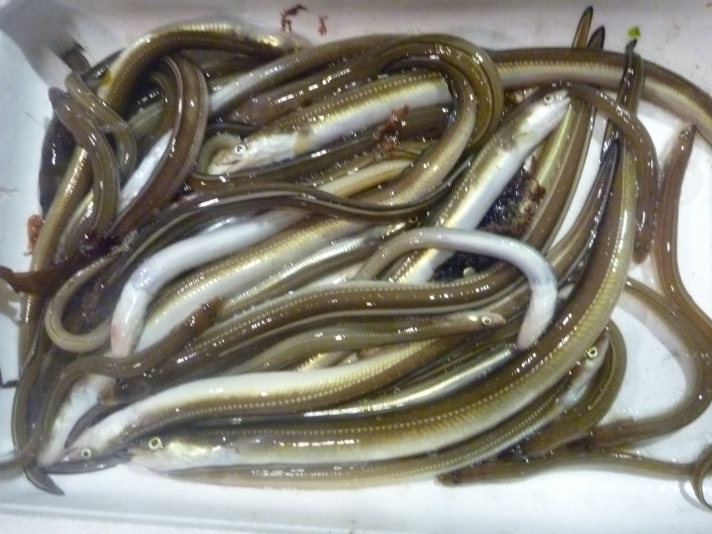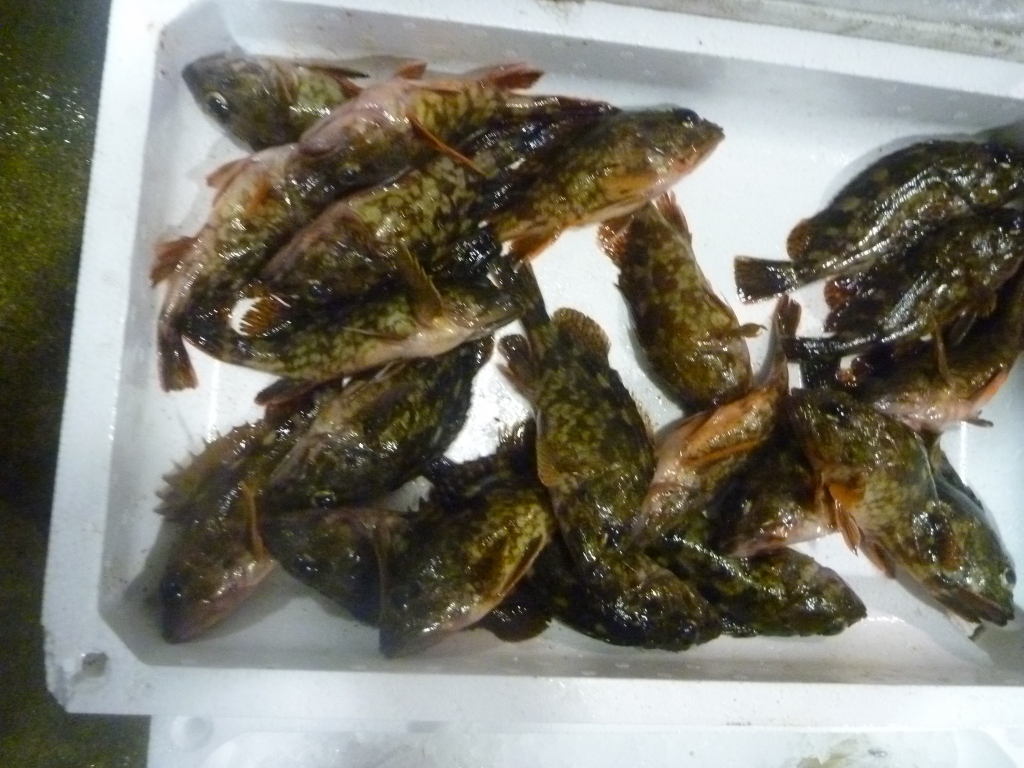 主なものは、マダイ、ハネ、ヒラメ、ゲタ、メイタ、オコゼ、メバル類、アナゴ、