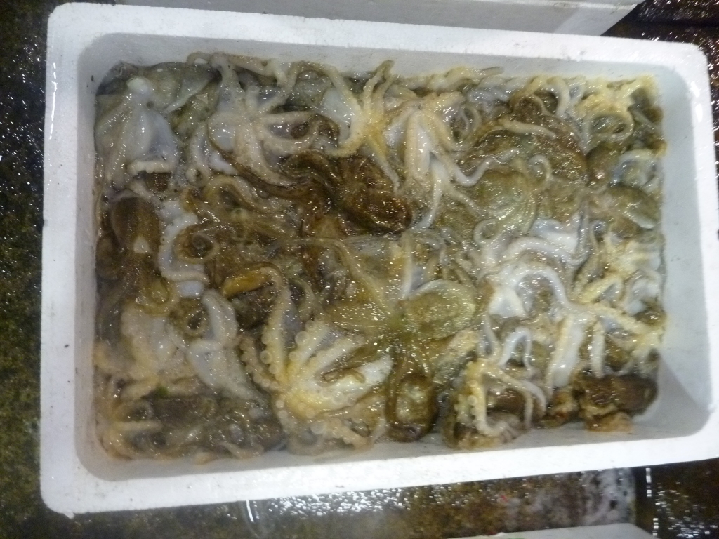 イイダコ、マダコ、ベイカ、小エビ、タチガイ、ニシ貝、ナマコ等です。