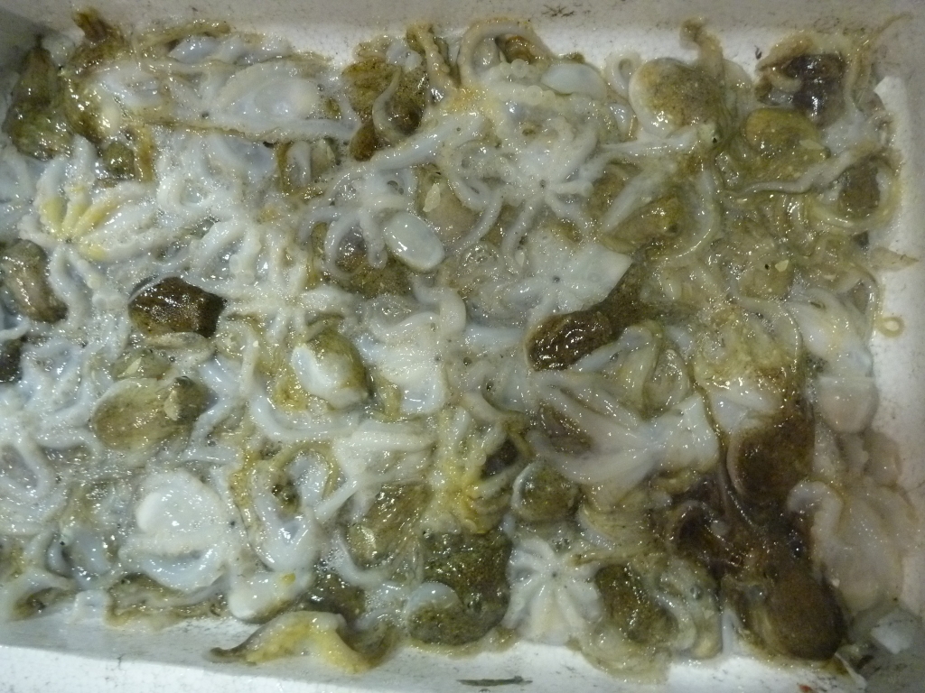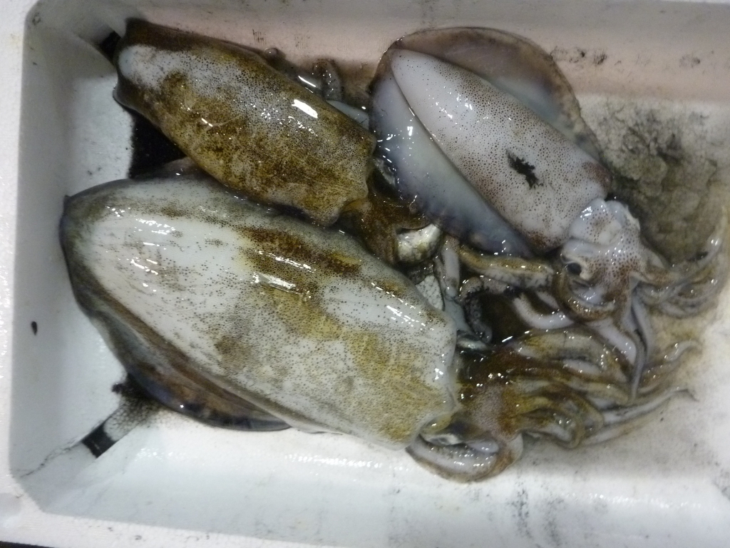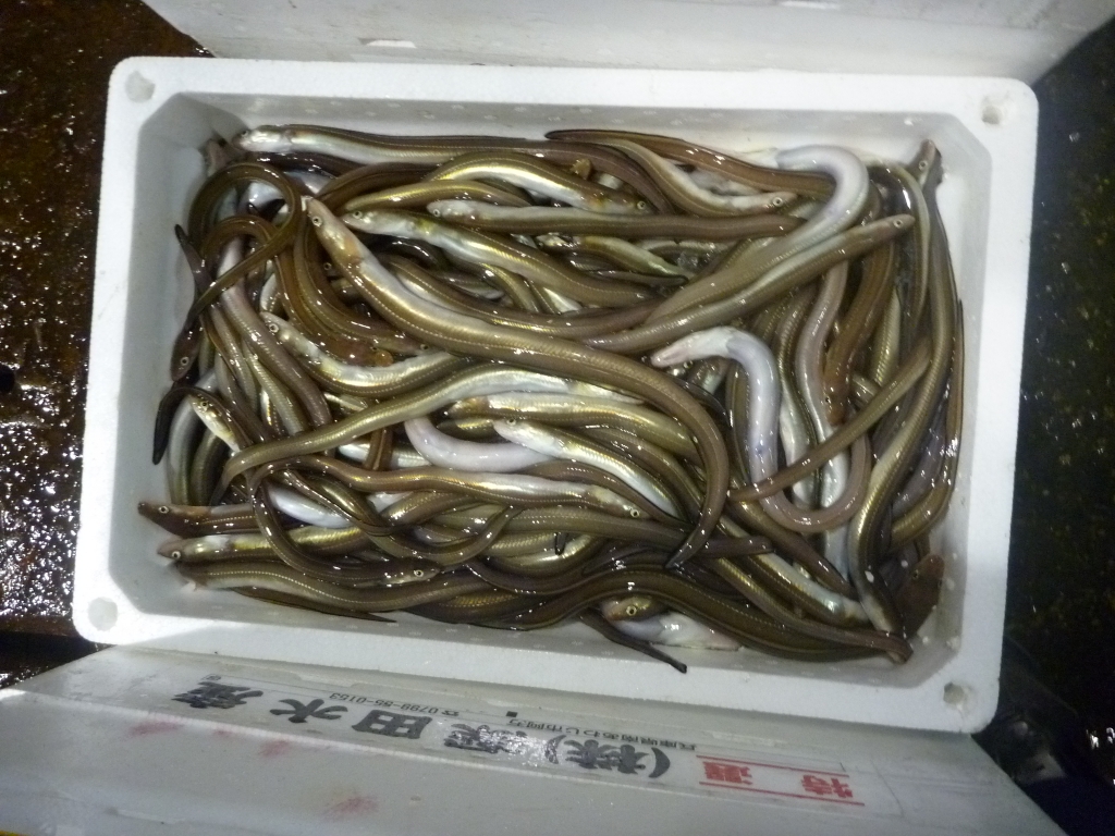 アナゴ、ハリイカ、ミズイカ、イイダコ、ワタリガニ、モエビ、クルマエビ、ニシ貝等です。