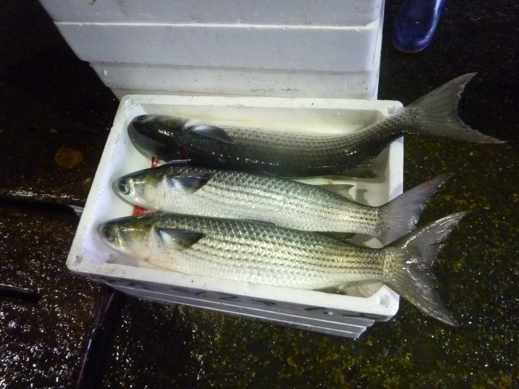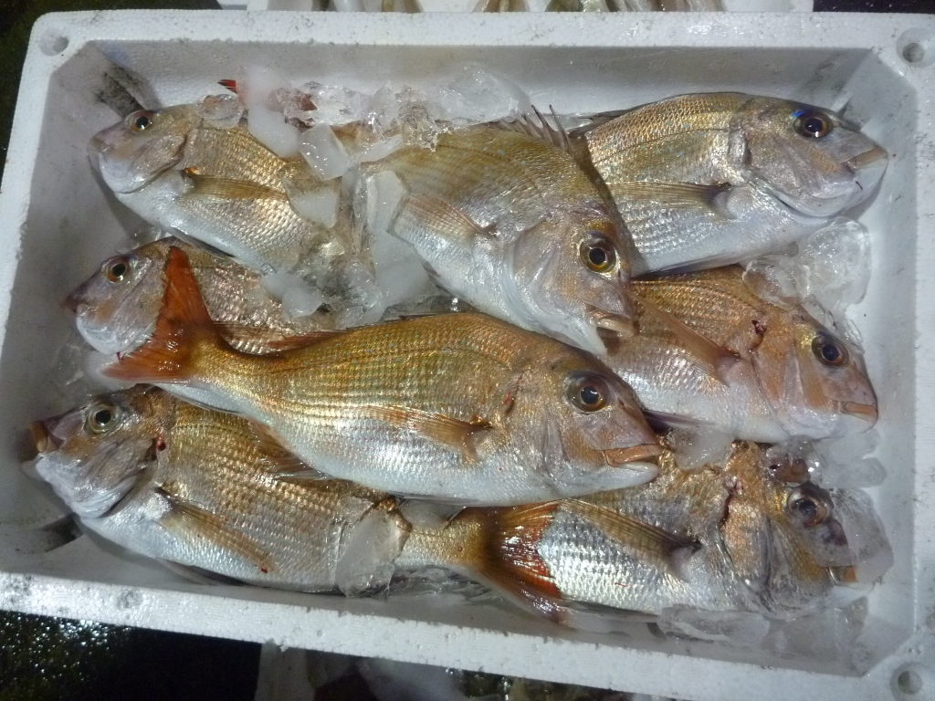 主なものは、マダイ、メイタ、メバル類、チヌ、ハネ、キス、ボラ、ニベ、アナゴ、イイダコ、