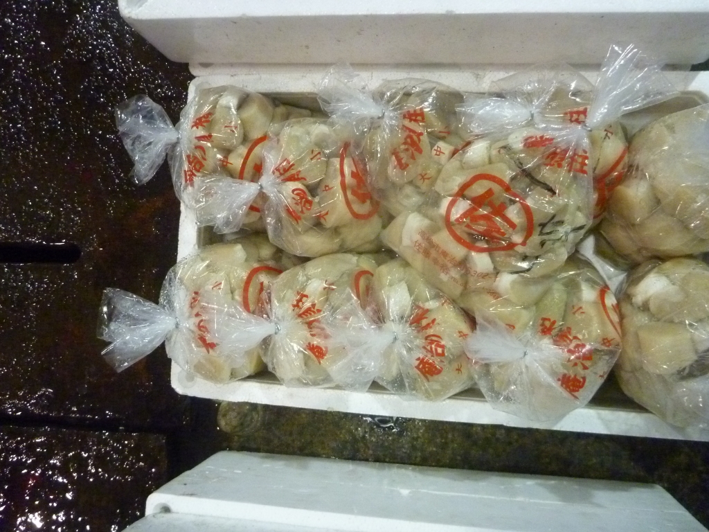 タチガイ、ニシ貝、ナマコ、養殖ワカメ等です。