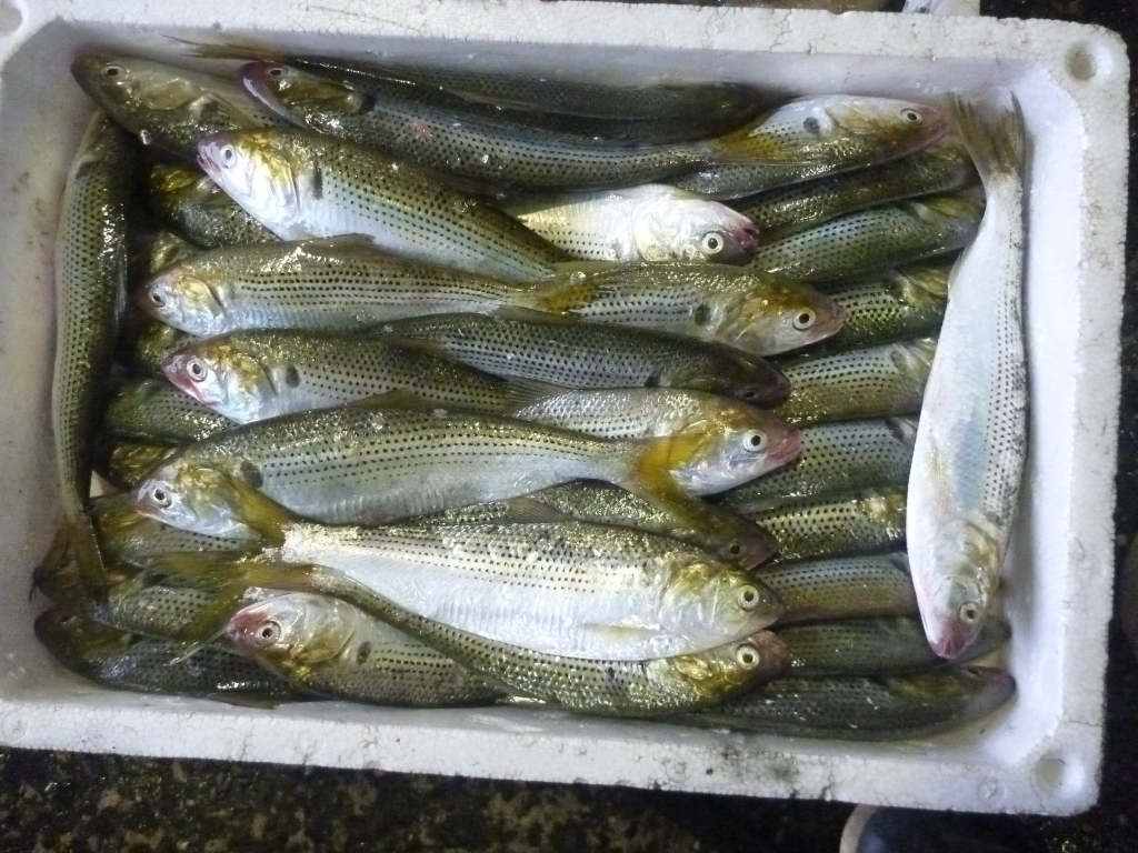 主なものは、サワラ、マダイ、ハネ、ヒラメ、チヌ、ゲタ、メイタ、コノシロ、コチゴ、オコゼ、