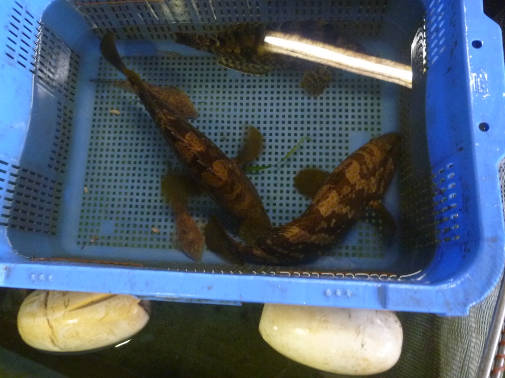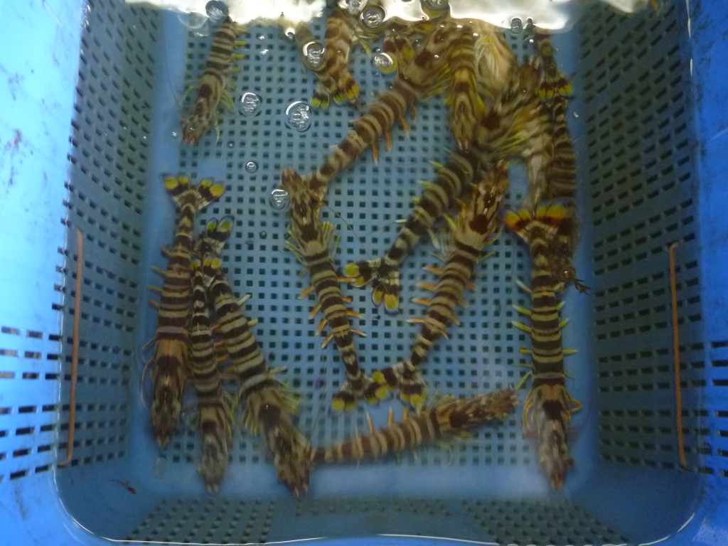 メバル類、アコウ、アナゴ、ハリイカ、ベイカ、マダコ、小エビクルマエビ、、ワタリガニ