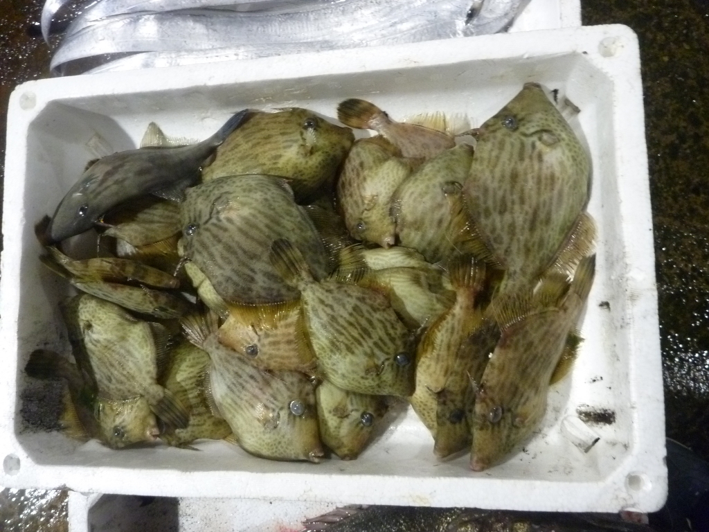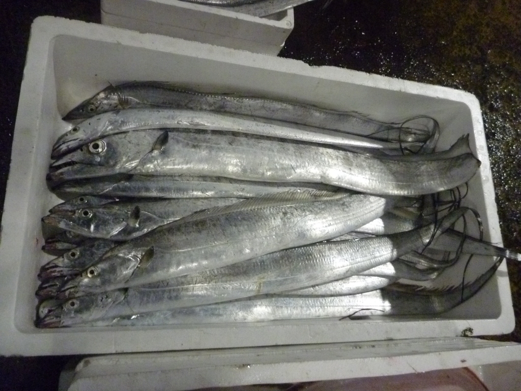 今朝も引き続きタチウオ、マルハギ、タイゴ、メイタが多く入荷しています。