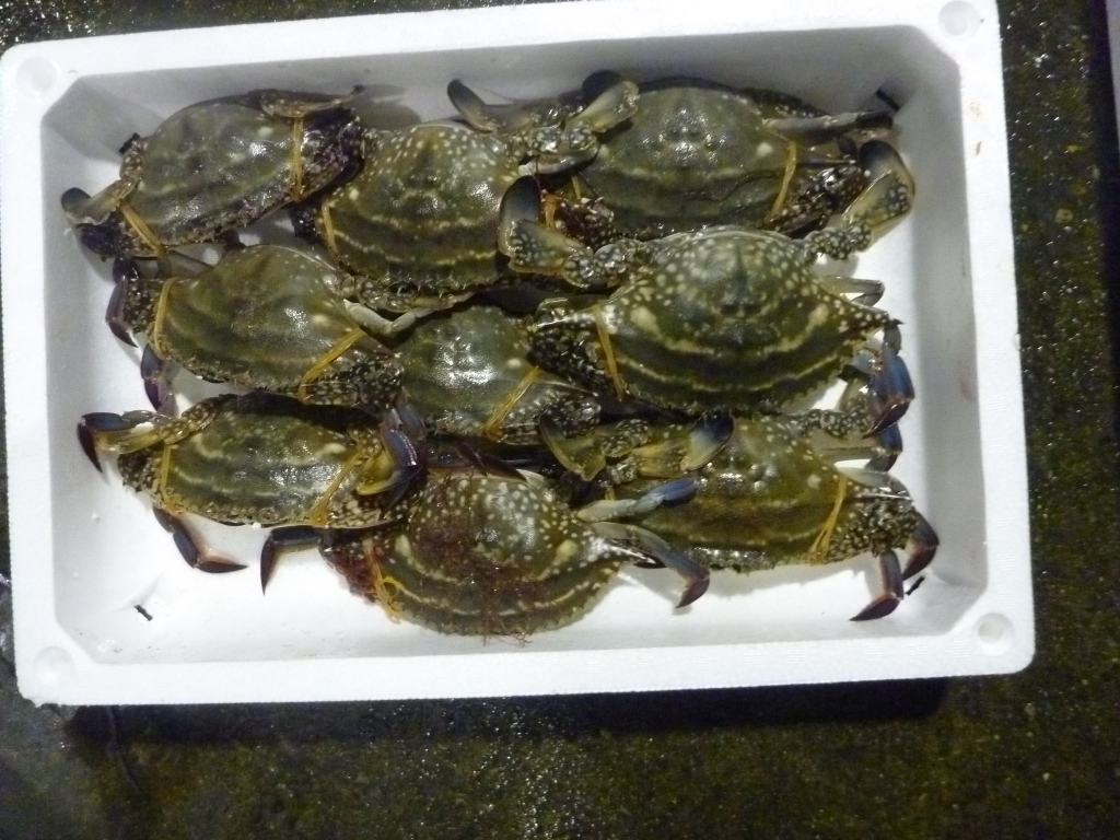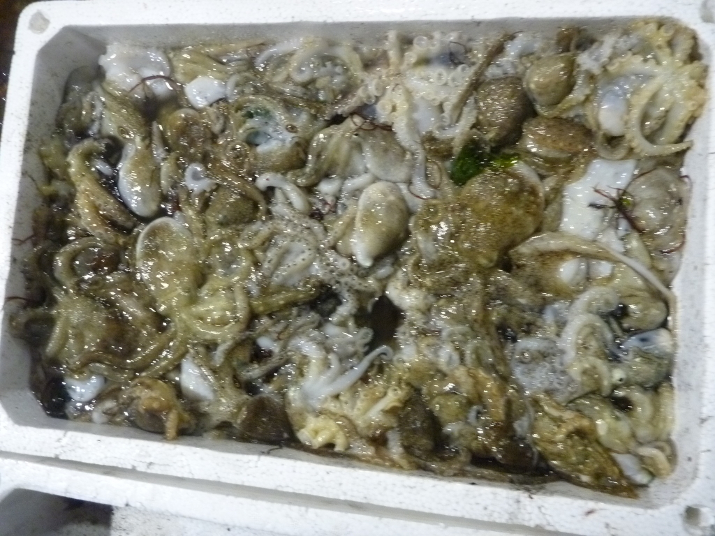 小エビ、ワタリガニ、ニシ貝、サザエ、ナマコ等です。