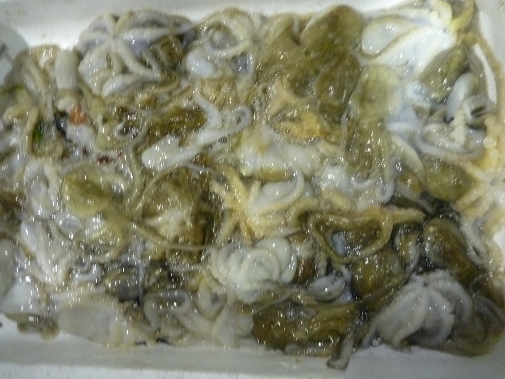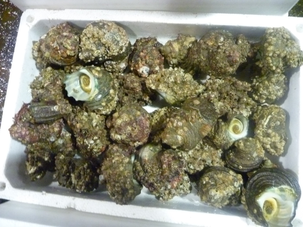 イイダコ、マダコ、小エビ、ワタリガニ、イシガニ、タチガイ、サザエ、ニシ貝、