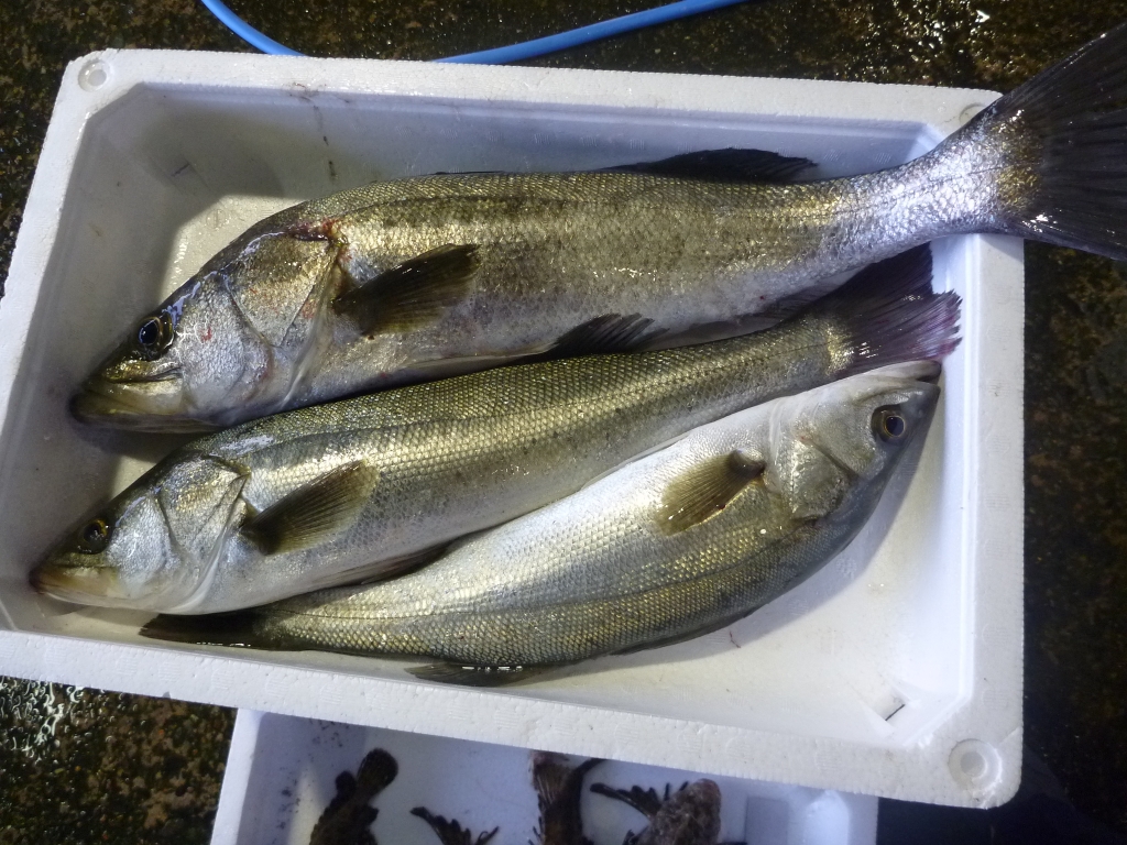 主なものは、マダイ、チヌ、ハネ、ヒラメ、メイタ、ゲタ、オコゼ、コチゴ、コノシロ、