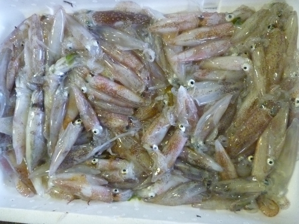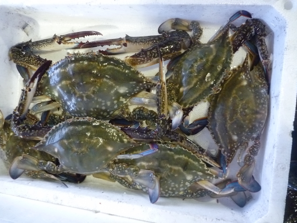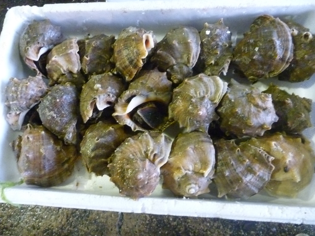 小エビ、クルマエビ、ワタリガニ、ニシ貝等です。