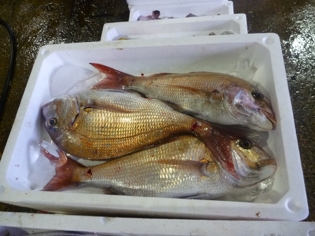 主なものは、マダイ、ハネ、チヌ、ヒラメ、メイタ、ゲタ、メバル類、オコゼ、キス、