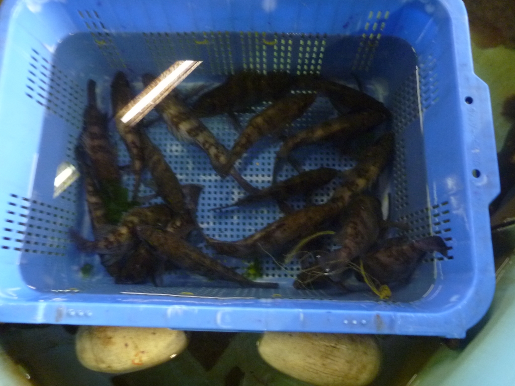 アイナメ、クジメ、ナゴヤフグ、ニベ、アナゴ、アカエイ、イイダコ、マダコ、テナガダコ、