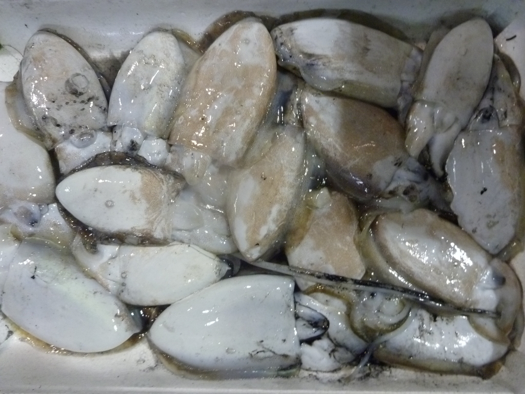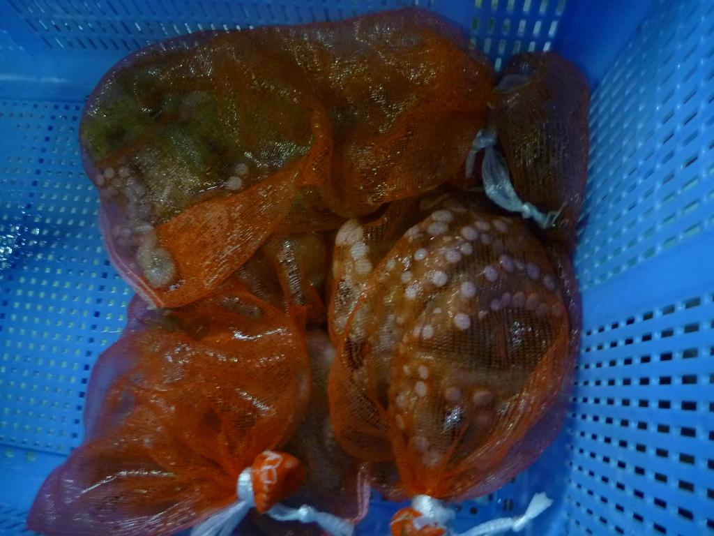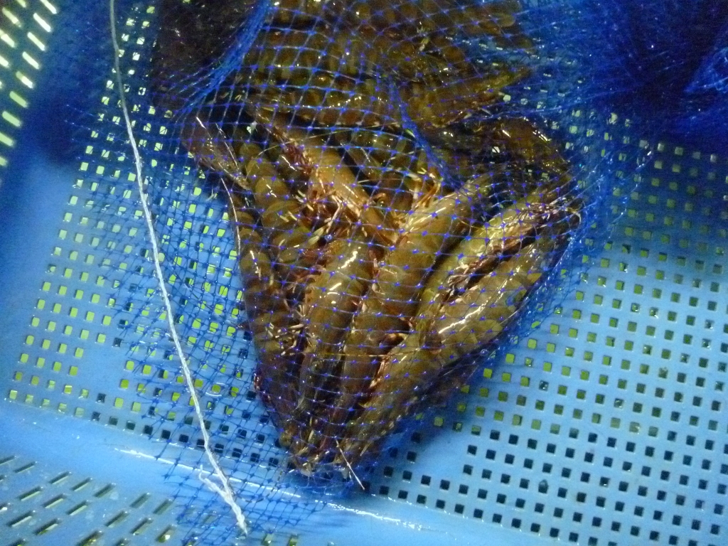 ミズイカ、クルマエビ、モエビ、ワタリガニ、ニシ貝等です。