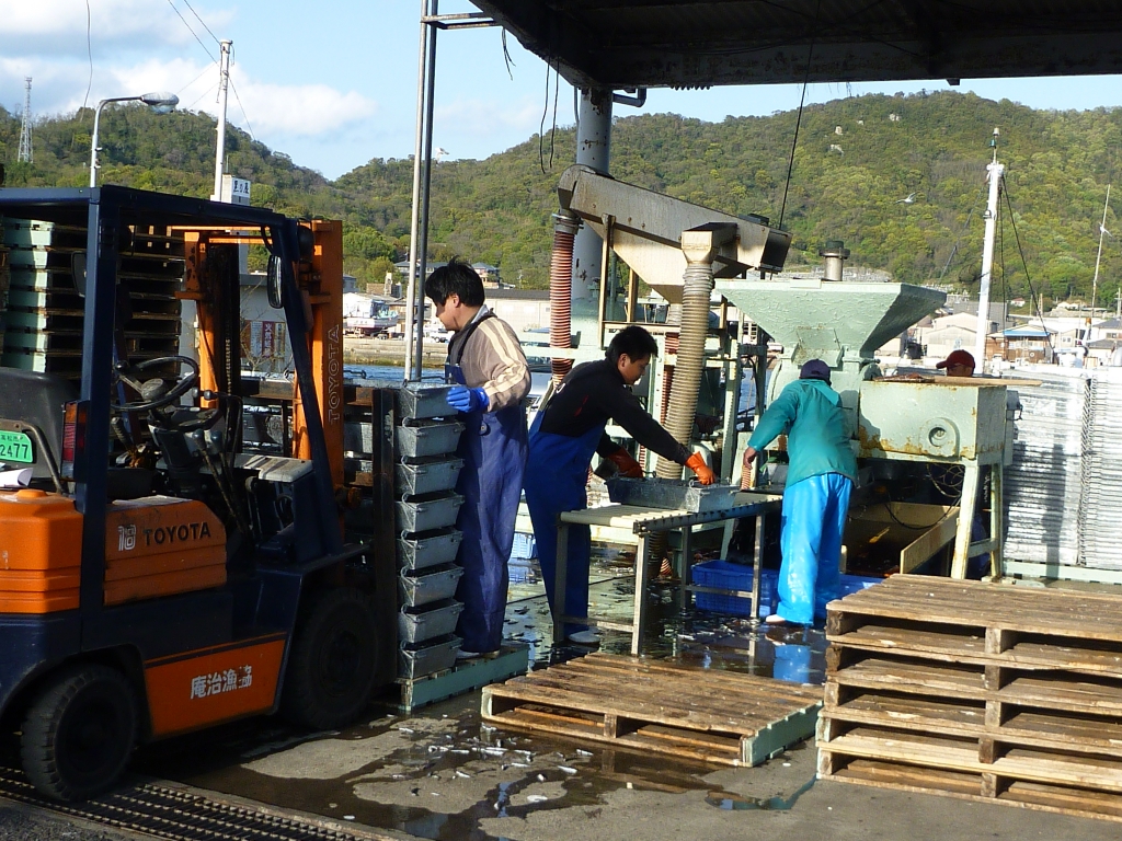 イカナゴ陸揚げ作業風景