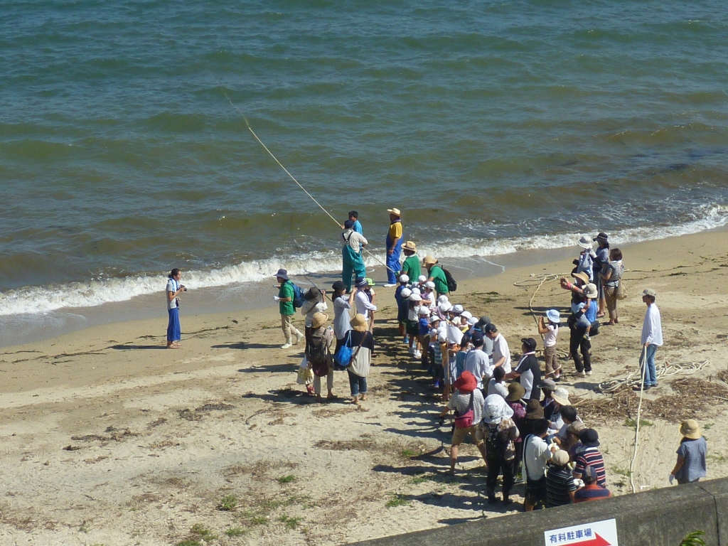 始めに、さくら会の人から魚の話や地引網の方法等について話を聞き、