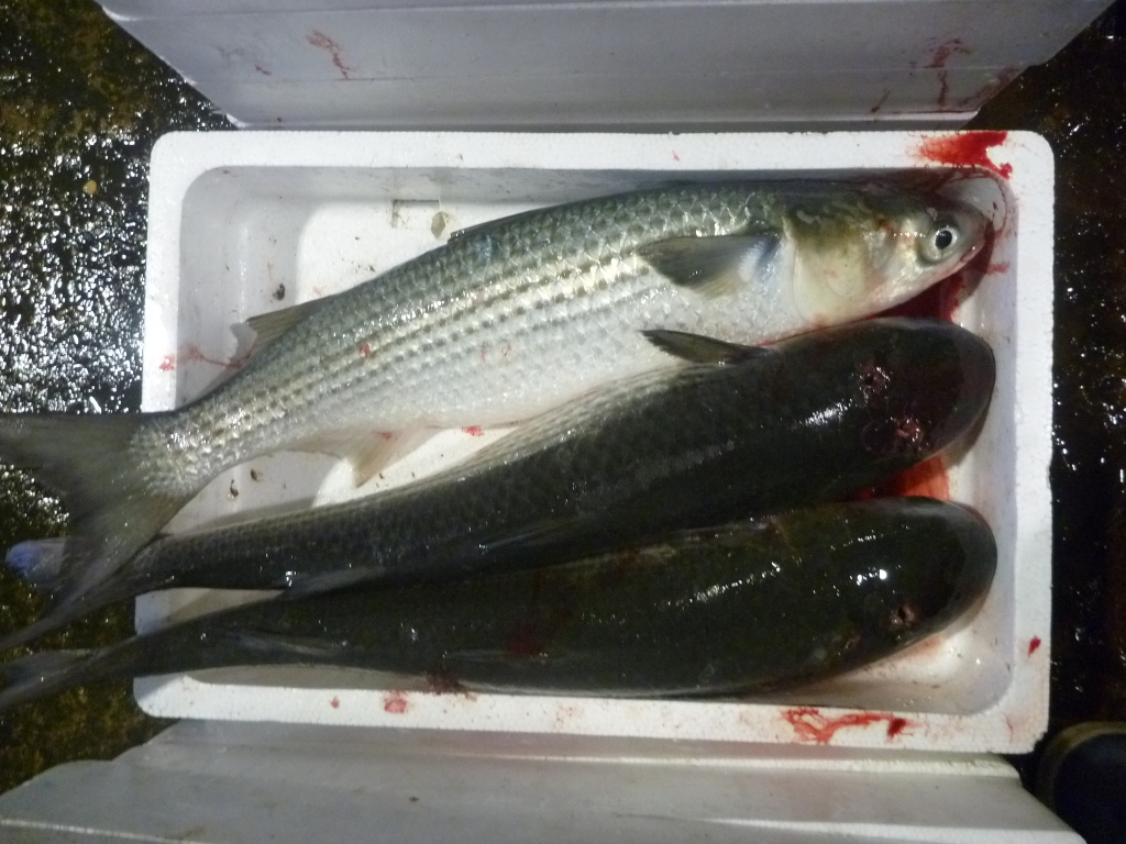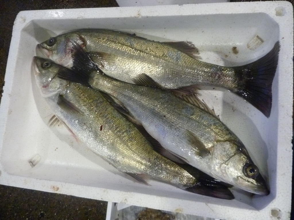 主なものは、サワラ、マダイ、ハネ、チヌ、メイタ、ゲタ、オコゼ、コチゴ、ボラ、