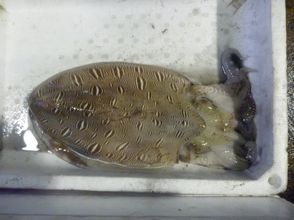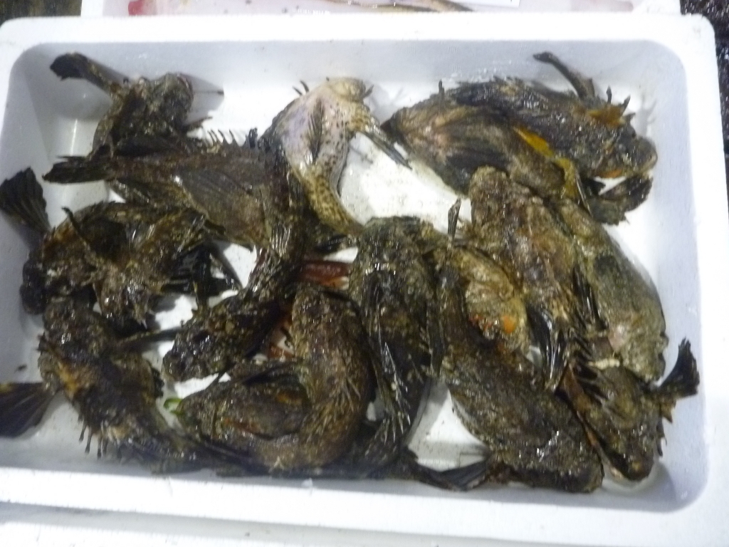 昨日は9隻の出漁で、オオブク、ナシフグ、イカが僅かに漁獲されていました。