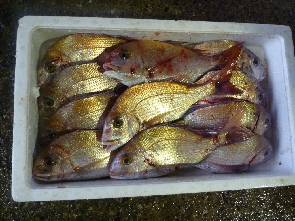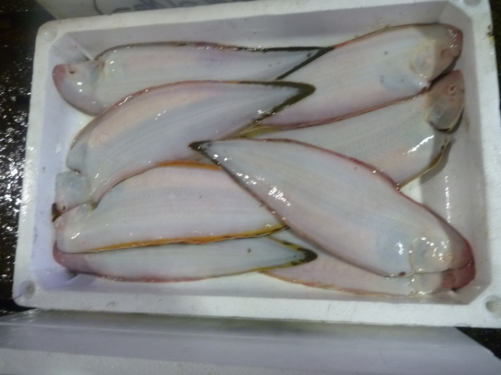 今朝も早朝からこまし網は、出漁しました。 昨日は14隻が出漁して、ナシフグ14トン余、イカナゴ6トン余の漁獲がありました。 今日もナシフグとイカナゴ狙いでの出漁のようです。 オオブクとイカは申し訳程度の漁獲です。 市場情報 今朝の市場への入荷は、順調です。 主なものは、マダイ、ハネ、ヒラメ、クロダイ、ゲタ、メイタ、メバル類、ナゴヤフグ、カワハギ、 キス、コノシロ、アナゴ、マダコ、ハリイカ、ニシ貝、タチガイ等です。 サワラ情報 昨夜の漁は、定休日につきお休みでした。 したがって、市場に今日はサワラは、出ていません今朝の市場に出ている主な魚 マダイ