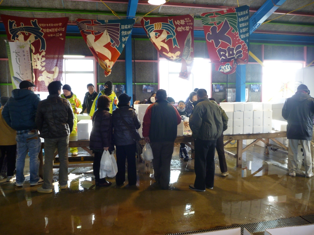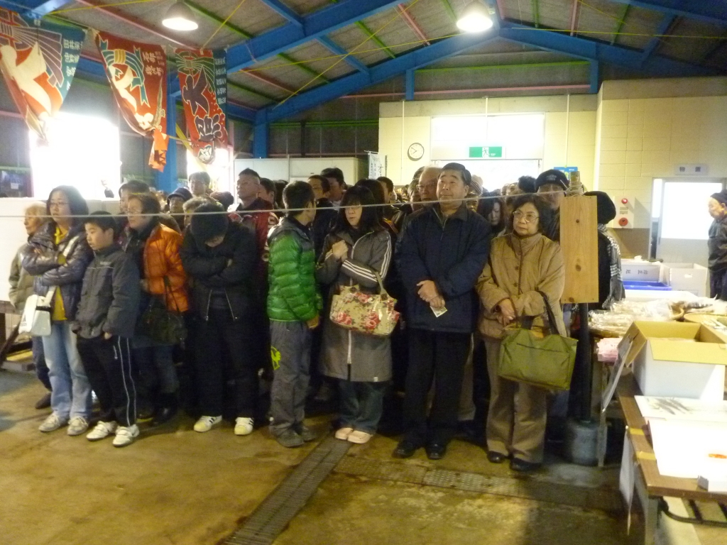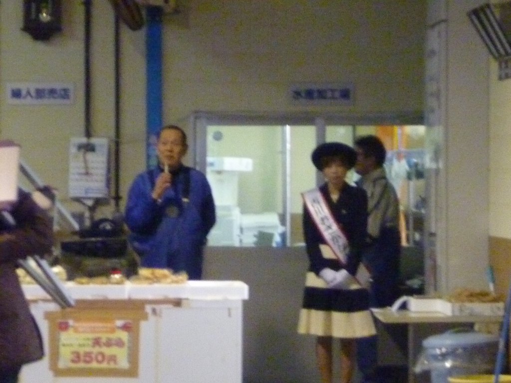 午前8時に嶋野庵治漁協長の挨拶を待ちかねて、開市となりました。