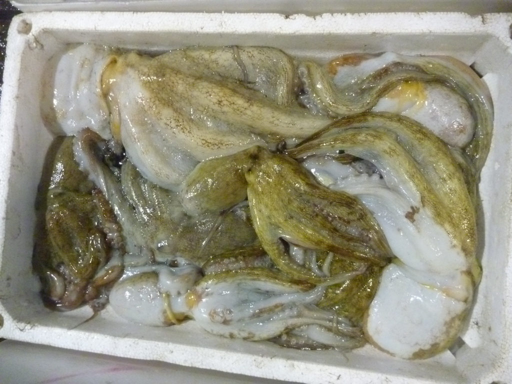 コウイカ、ミズイカ、ベイカ、クルマエビ、モエビ、ワタリガニ、イシガニ、ニシ貝等です。